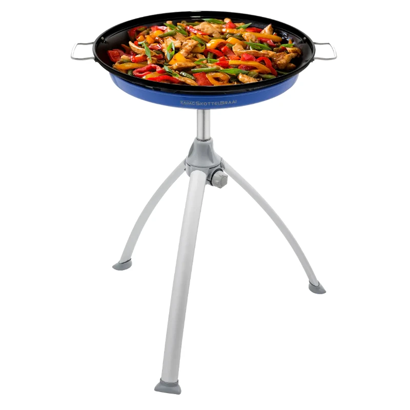 Découvrez le barbecue à gaz CADAC, idéal pour la préparation de plat en extérieur : paella, omelettes, wok, plats sautés, plats de pâtes, les sauces et les petits déjeuners… Robuste et maniable, le modèle Skottelbraai pèse moins de 6 kg. Ses pieds repliables permettent de ranger le BBQ, idéal pour faciliter le rangement et le transport. La surface de cuisson peut accueillir aussi bien une casserole comme le Skottel.