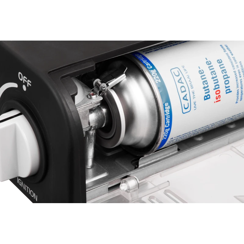 L’appareil CADAC fonctionne avec une cartouche de gaz (en option). Pour diversifier vos plats, vous pourrez vous munir de différents accessoires de cuisson.