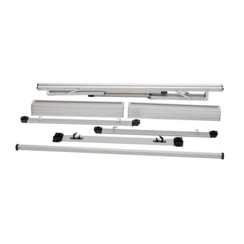 Cette table pour camping-car offre un grand plateau de 140 x 70 cm convenant pour 6 personnes au maximum. Une fois pliée et rangée dans son sac de transport (fourni), elle ne prend que très peu de place et se logera facilement dans un coffre ou sous un banquette d’un fourgon aménagé. Accessoire de qualité bien conçu, cette nouvelle version offre maintenant un filet de rangement sous le plateau.