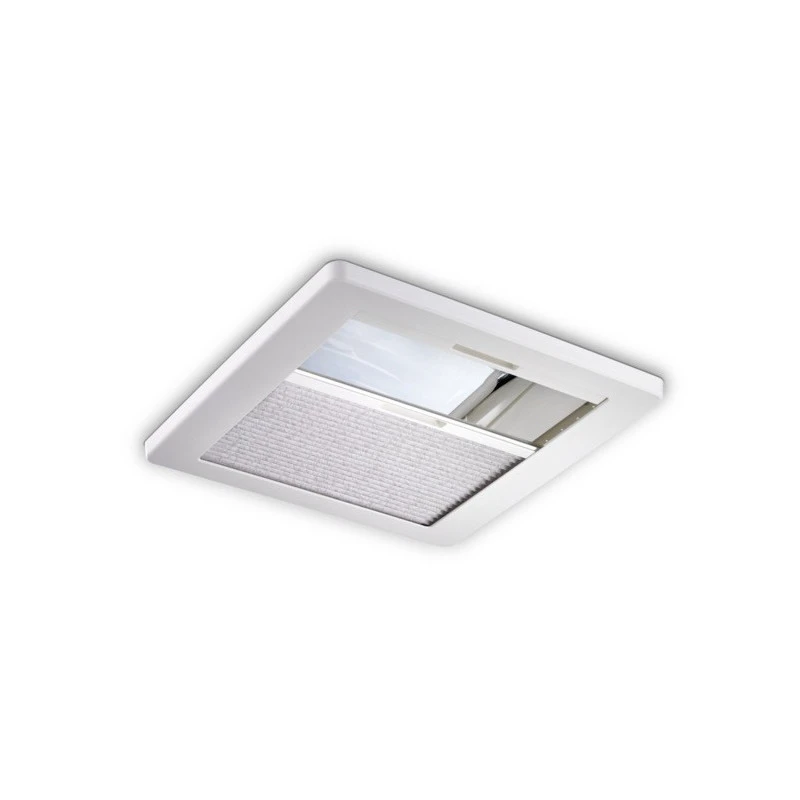 Ce lanterneau est un équipement camping-car de qualité : le dôme transparent en acrylique est livré complet avec contre cadre, moustiquaire et store type rideau occultant.