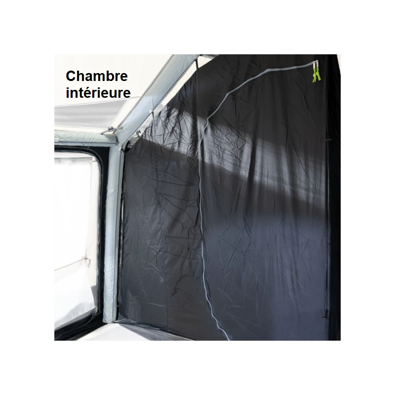 Avec ses 2,4 m de large, ce sas est idéal pour ranger votre matériel de camping ou déjeuner à l’abri du vent. Pour plus d’intimité, l’auvent est doté de rideaux permettant ainsi d’obscurcir les fenêtres transparentes présentes dans le sas.