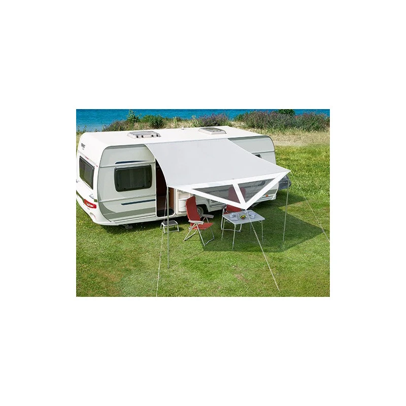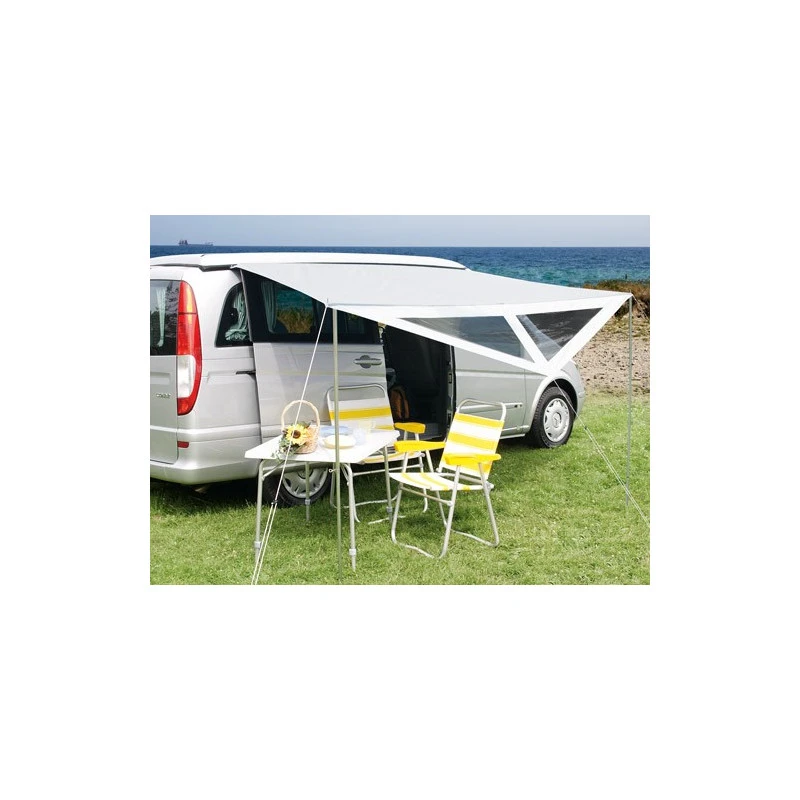 La solette Delta est fabriquée par DWT et particulièrement adaptée pour les personnes voyageant en caravane ou en fourgon aménagé. Ce type de solette est étudiée pour prendre le moins de place possible à bord et constituer un auvent d’appoint idéal pour déjeuner à l’ombre.