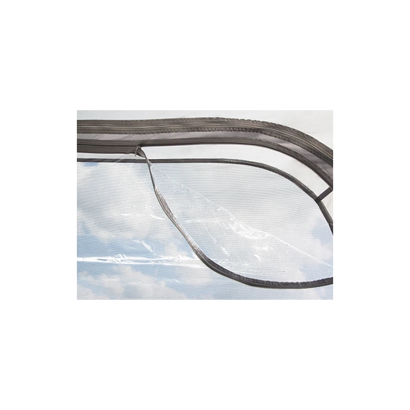 2 des 4 parois fournies disposent d’une moustiquaire ainsi que d’un volet intérieur transparent. Complet, il est fourni avec une pompe de gonflage ainsi que le système d’haubanage pour assurer une tension parfaite de votre auvent en extérieur, le tout rangé dans un sac de transport.