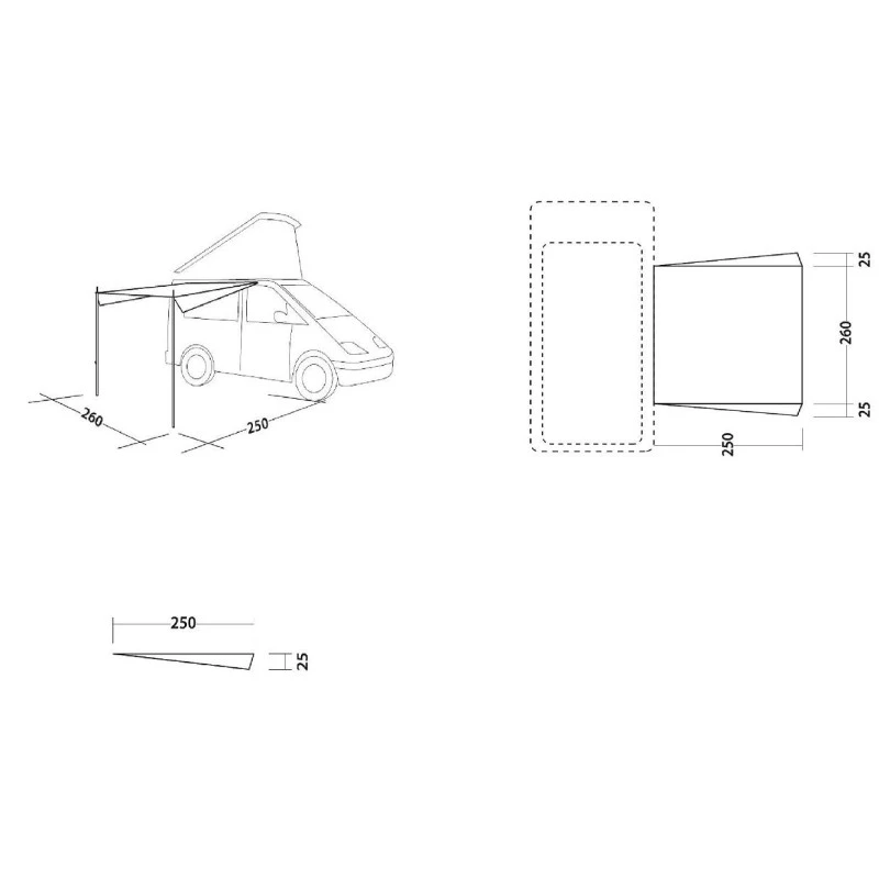 Le store latéral EASYCAMP offre un abri supplémentaire à votre van aménagé lors de vos pauses sur les terrains de camping, lors d’événement en pleine air ou bien en camping sauvage. Facile et rapide à installer, profitez de l’extérieur tout en étant protégé par le soleil, la pluie pendant votre déjeuner.