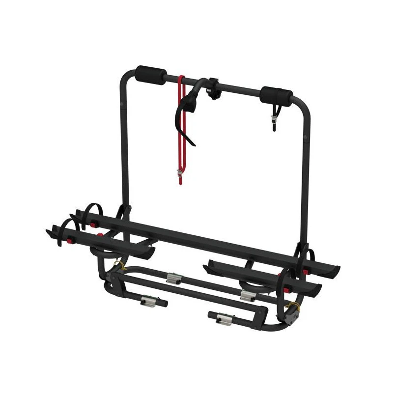 Ses dimensions réduites sont parfaites pour se positionner sur les flèches de caravane même courtes (minimum 34,2 cm). Malin, la partie haute du porte-vélo se bascule vous laissant ainsi un accès aisé à votre coffre à gaz. Les vélos peuvent également rester en place pendant l’inclinaison.