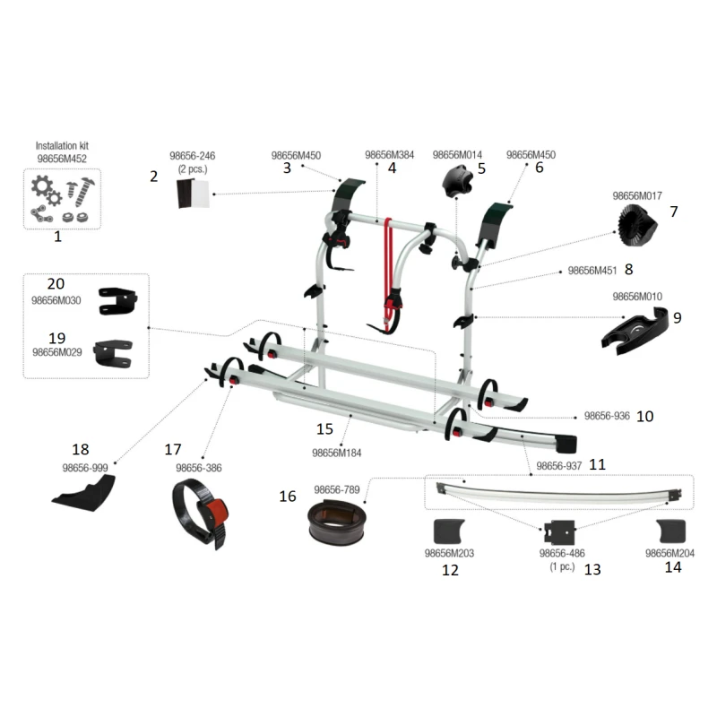 Accédez à l’ensemble des pièces détachées d’origine FIAMMA pour remettre en état ou réparer votre porte-vélos Carry-Bike FORD Custom installé à l’arrière de votre fourgon aménagé.