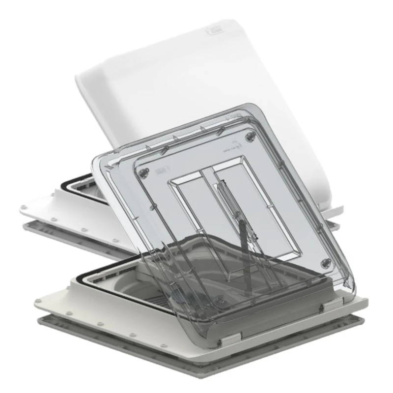 Le Turbo-Vent de FIAMMA est un lanterneau de toit pour camping-car, van & fourgon aménagé avec ventilateur 12 V proposé en blanc ou transparent. Dimensions de 400 x 400 mm pour épaisseur de toit de 3 à 4,5 cm d’épaisseur.