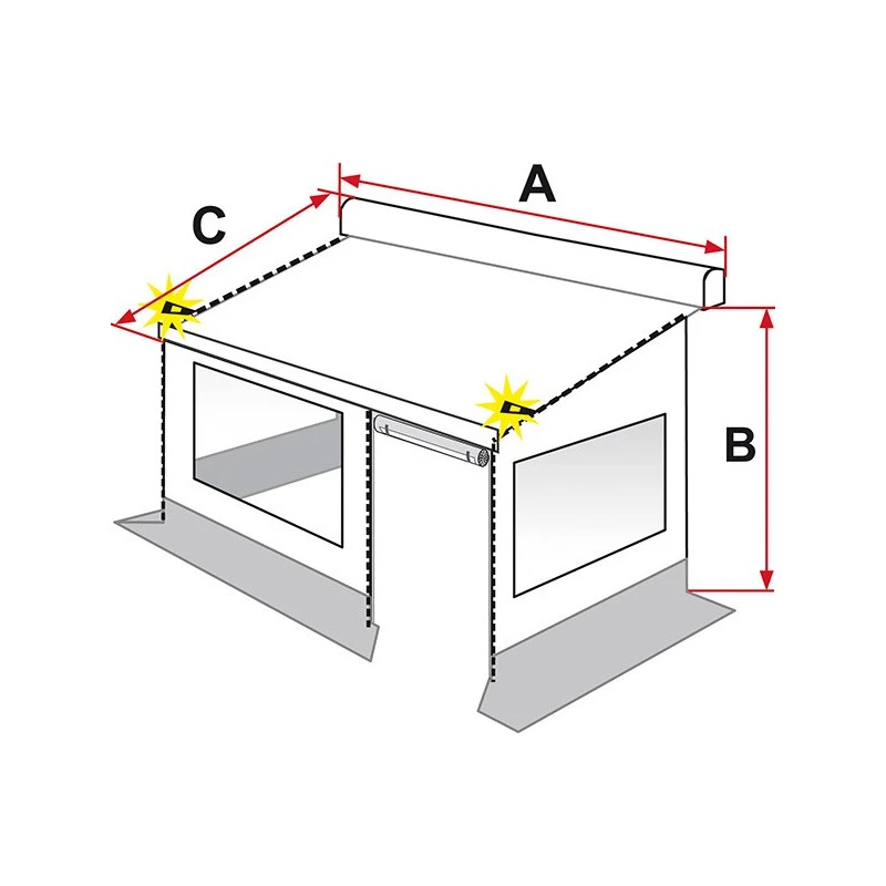 | Zip S 300 Large | 308 cm | 251 à 280 cm | 250 cm | 7,3 m² | 23,5 kg |