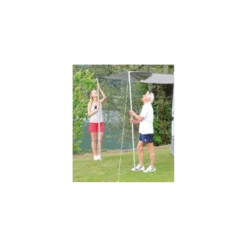 La fixation au véhicule se fait grâce à deux jonc différents : l’un de ø 5 mm et l’autre de ø 7 mm ; ainsi vous utilisez celui qui convient à votre utilisation : rail de auvent de caravane ou rail de barre de charge du store par exemple. La mise en place côté véhicule est donc très simple. Côté structure, là aussi c’est du solide : des tubes aciers galva très robustes.
