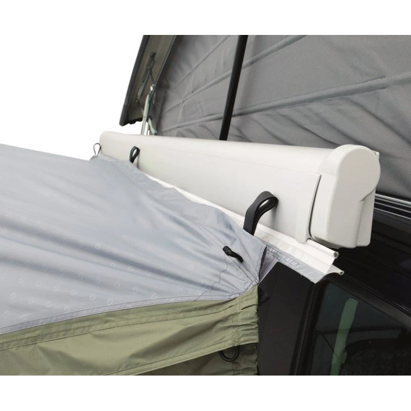 Le auvent latéral Lakecrest est un produit de très bonne qualité pour l’été, fabriqué en 100 % polyester et Outtex® 3000 Select pour une bonne imperméabilité lors de voyages en van aménagé. Cet équipement extérieur est spécialement développé pour vous offrir une pièce supplémentaire en toute sécurité en camping. Cet auvent avec des bandes auto-agrippante sur le double-toit et les mâts permet d’assurer une stabilité et une résistance contre de forts vents ou de pluie. Il est en outre doté d’un matériau ignifugé pour répondre aux réglementations les plus récentes concernant les matériaux destinées aux auvents.