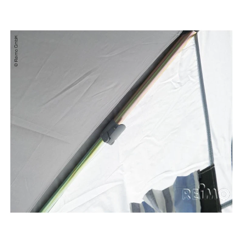 Universel, il convient pour toutes les caravanes avec rail d’auvent situé de 235 à 250 cm du sol, pour la fixation la firme Allemande REIMO l’a équipé d’un jonc de 6 mm de diamètre. La structure est métallique avec tube de ø 25 à 22 mm. Pour une utilisation intensive en hiver, ou en cas de chutes de neige importante, REIMO propose un kit hiver supplémentaire.