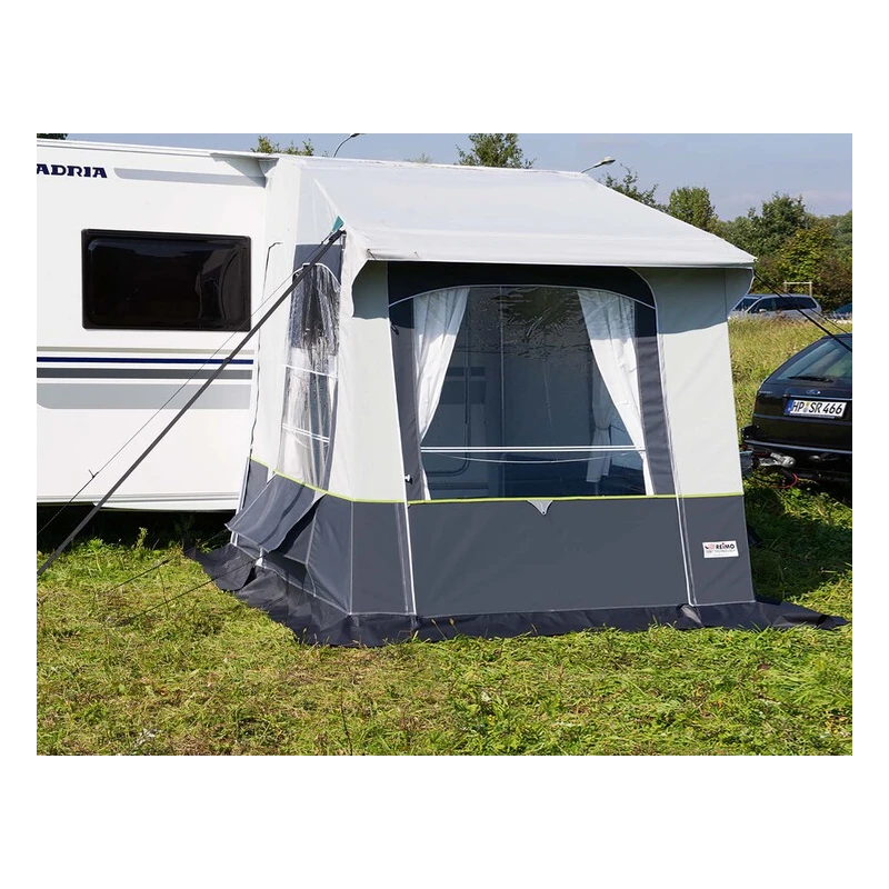 Le Cortina II de REIMO est un sas latéral de caravane parfait surtout pour toutes les saisons été comme hiver en caravanage à la montagne. Dimensions au sol de 220 x 180 cm.