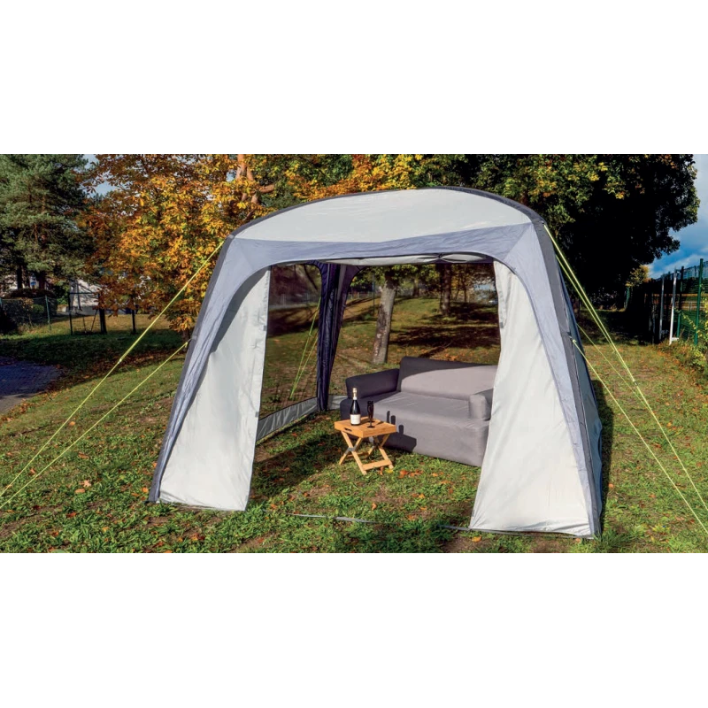 La Linosa 400 x 400 cm de REIMO est une grande tonnelle à structure gonflable et paroi latérale idéale pour le camping-car, le camping ou même le jardin !