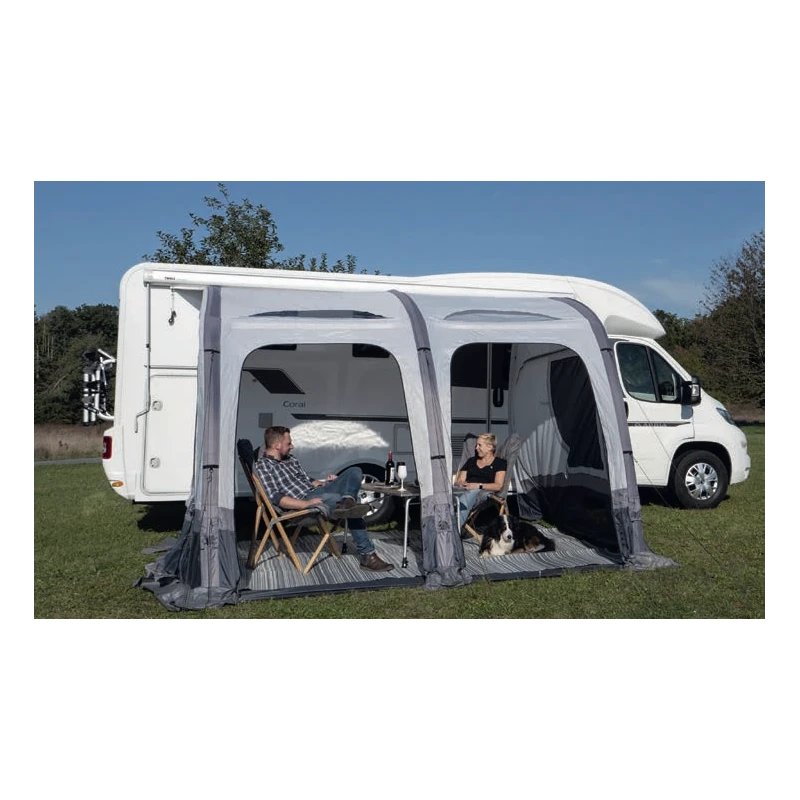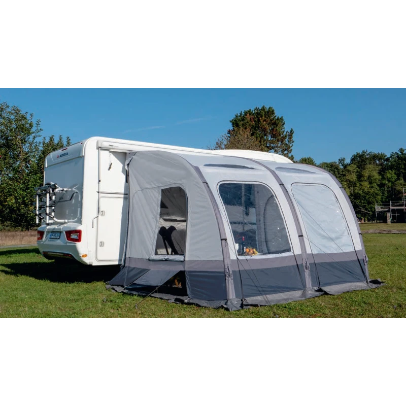 L’auvent Marina Air High 390 de chez REIMO doté d’une structure gonflable offre un bel espace de vie supplémentaire en bord de mer ou en camping pour les camping-car ou fourgons H2- H3 pour une hauteur de toit de 250 à 280 cm.