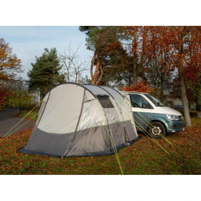 Cet auvent latéral pour van aménagé offre un bel espace de vie étanche lors de vos séjours en vacances avec votre véhicule de loisirs. Doté de grandes ouvertures et de moustiquaire pour profiter de la luminosité extérieure, vous pouvez aussi utiliser les rideaux pour plus d’intimités en soirée.