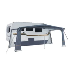 Sa large ouverture frontale vous permettra d’utiliser la porte en guise de pare-soleil si vous y installer des piquets additionnels. En option, il est également possible d’y ajouter une chambre intérieure pour transformer votre auvent en toile de tente et ainsi pouvoir y dormir confortablement. Le Tour Easy 4 possède des arceaux en fibre de verre facile à enfiler et résistant au vent.