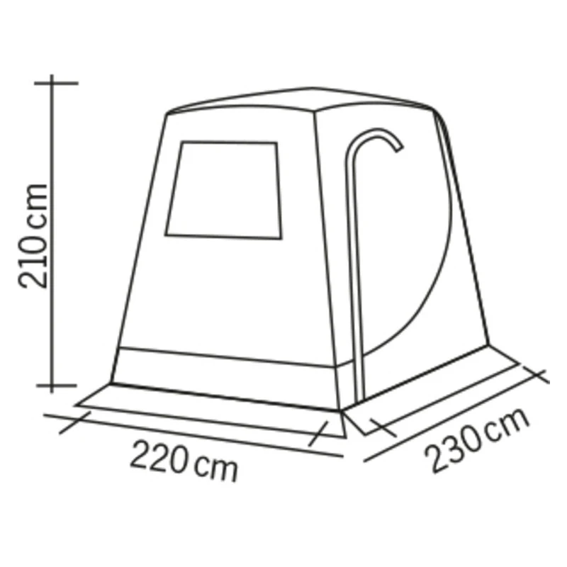 Son tapis de sol est cousu et fixé par bandes velcro sur votre pare-choc pour éviter tout passage d’air. Lumineux, ce sas possède des lucarnes à chaque porte d’entrée ainsi qu’à l’arrière du sas.