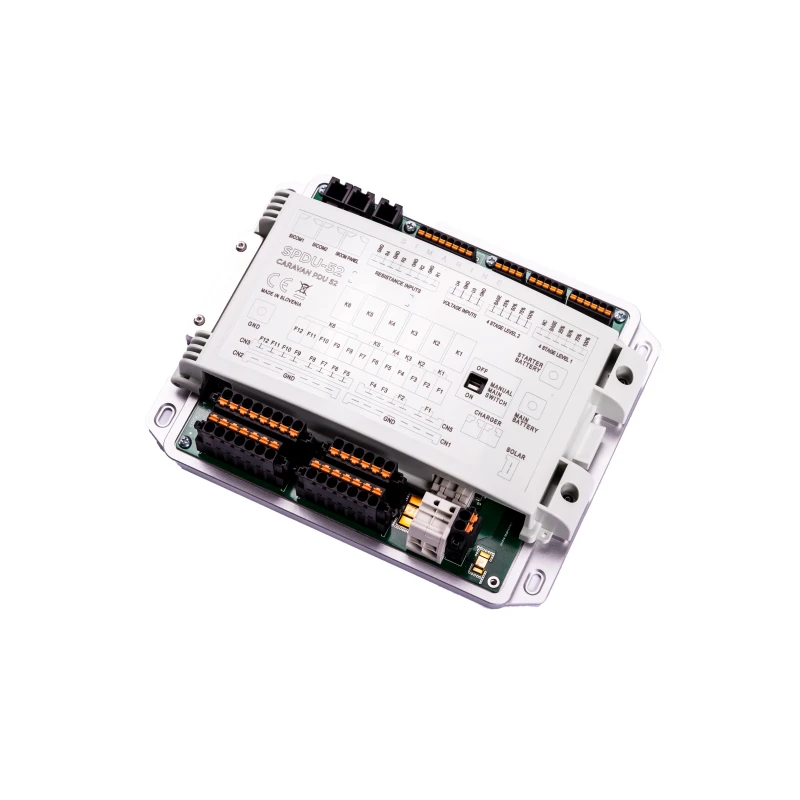 Le SCP100 est livré avec un panneau de contrôle & une centrale de distribution électrique. Son rôle premier est donc d’assurer la distribution de l’électricité dans l’aménagement & donc d’alimenter les consommateurs électriques : Réfrigérateur à compression, pompe à eau, prise USB etc…