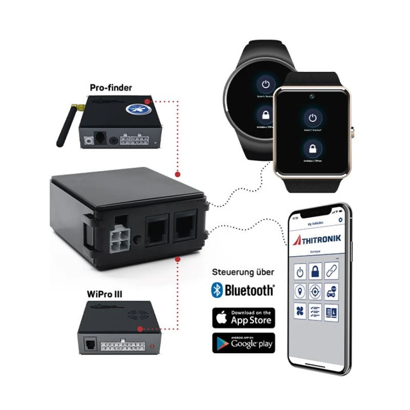 Ce module sert à une chose : piloter toutes les fonctions des alarmes WiPro III et WiPro III safe.lock directement depuis votre téléphone ! En somme, votre téléphone se transforme en clé pour verrouiller/déverrouiller votre véhicule (avec le WiPro III safe.lock seulement) et surtout pour piloter toutes les utilisations de l’alarme. Le tout se pilote via l’application THITRONIK très bien faite et en Français !