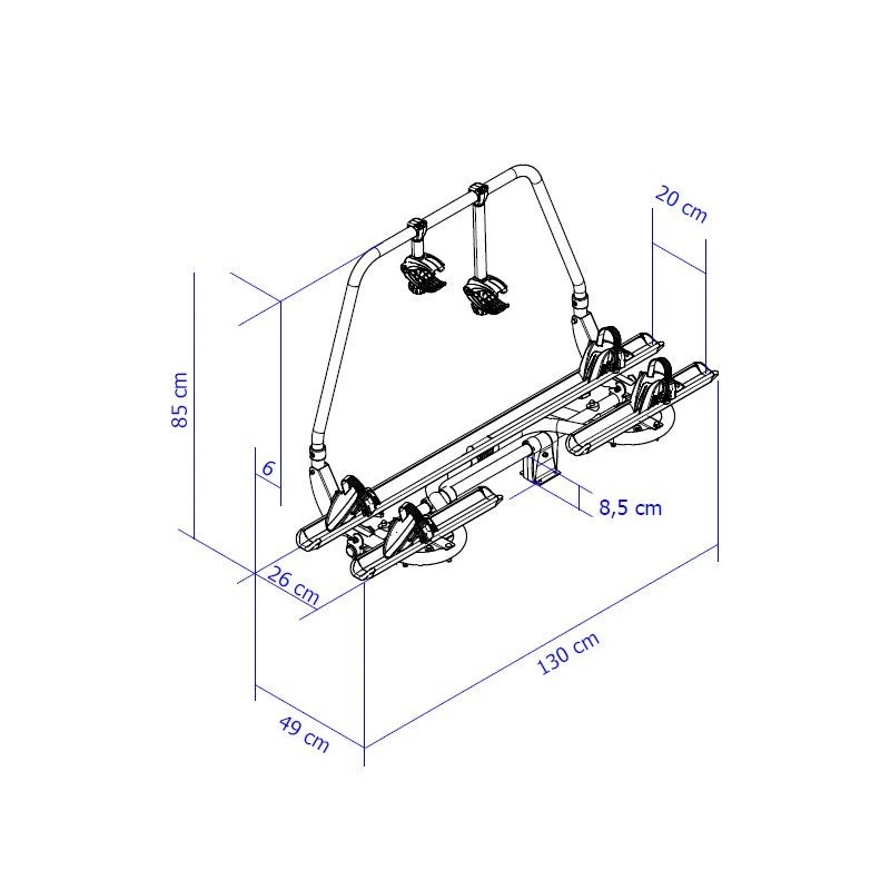 – Livré avec : accessoires de fixation, 2 rails pour vélo, barres de maintien du cadre avec verrou à clé