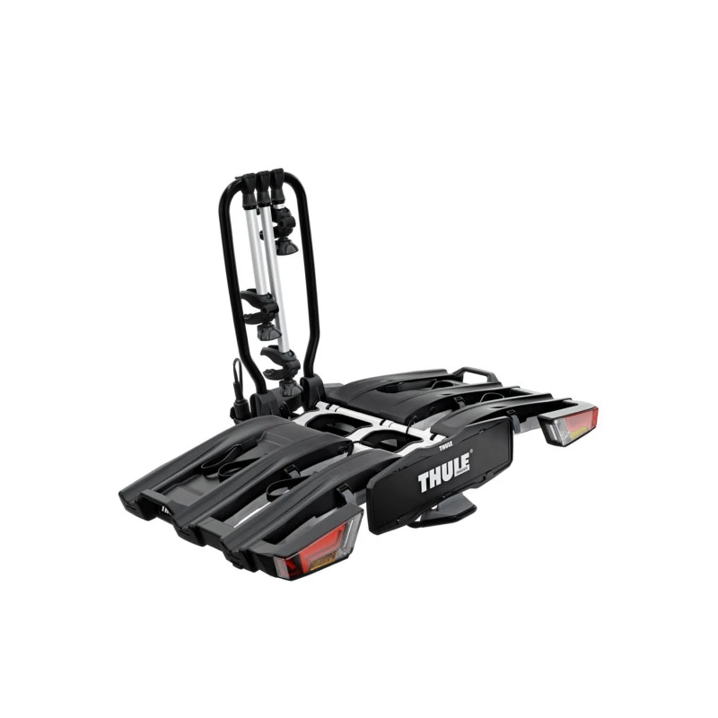Porte-vélos de la marque THULE, le modèle EasyFold XT 3 peut accueillir jusqu’à 3 vélos : VTT, électriques ou enfants. A disposer sur votre boule d’attelage à l’arrière de votre van ou fourgon aménagé, il est également entièrement pliable.