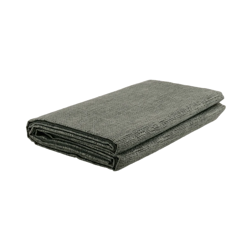 Tapis de sol de chez TRAVELLIFE, le modèle Aerotex fabriqué en toile de jute ignifugé, il sera parfaitement résistant aux UV et pourra être redécoupé selon votre besoin. Le tapis de sol pourra se loger sous votre auvent de caravane ou de camping-car.