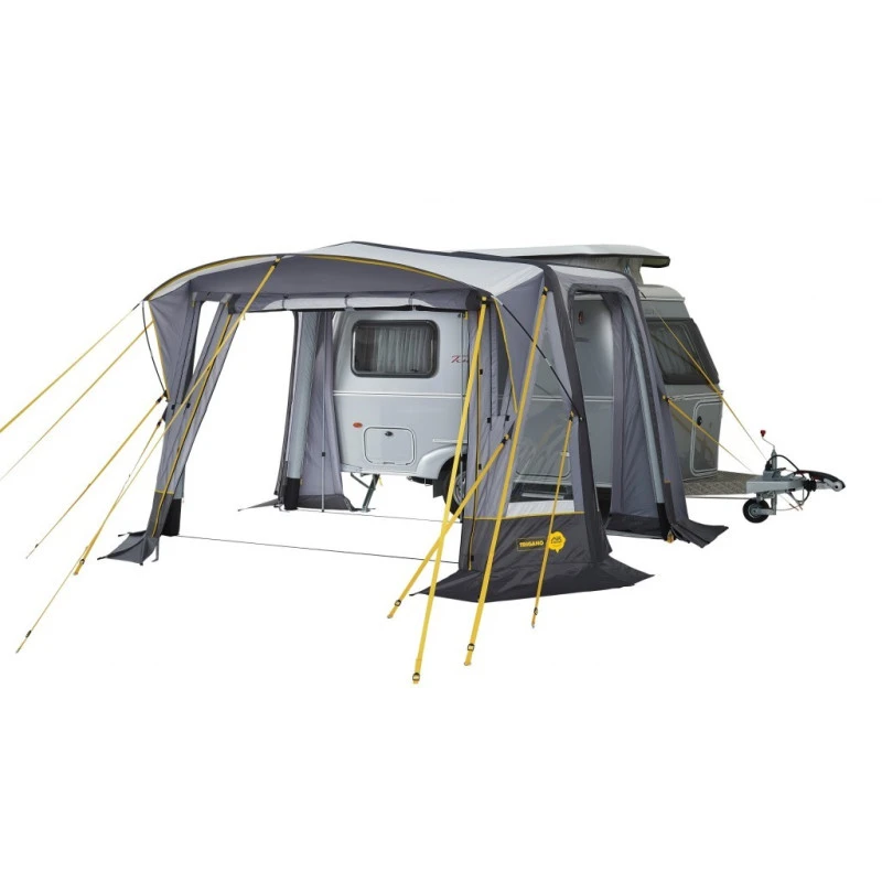 Les caravanes surbaissées ont aussi droit à un auvent gonflable adapté à leur petit gabarit : cet auvent de marque TRIGANO est pratique grâce à son armature gonflable qui vient se monter facilement et rapidement sans effort. Convient parfaitement pour les saisons printanières, estivales et automnales : il résiste aux intempéries. L’auvent pour caravane surbaissée dispose de 2 tubes à air à gonfler grâce aux valves extérieures. Dispose également de moustiquaires au niveau des portes latérales et d’aérations en façade.