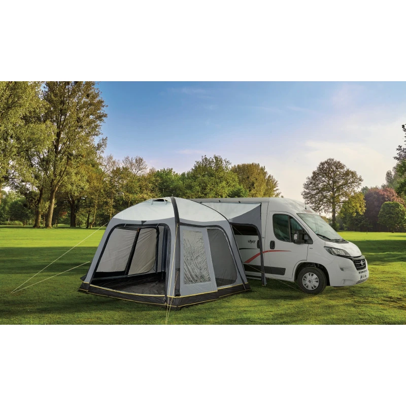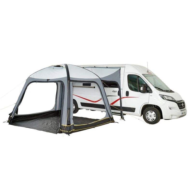Auvent de fourgon et de camping-car avec armature gonflable, simplifié pour un montage rapide dans votre store de paroi ou encore sur adaptateur magnétique.