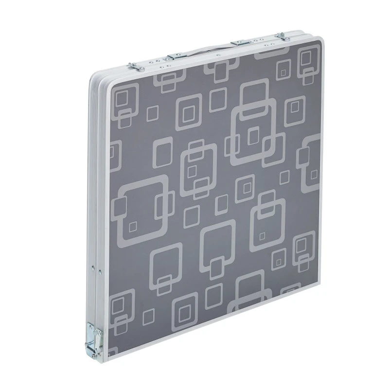Son plateau en bois stratifié est conçu en 2 morceaux ce qui permet de la replier pour un gain de place lors du rangement de votre équipement plein air dans votre soute. Un loquet de verrouillage est présent sur le côté de la table afin de maintenir le plateau en place sans risque d’effondrement.